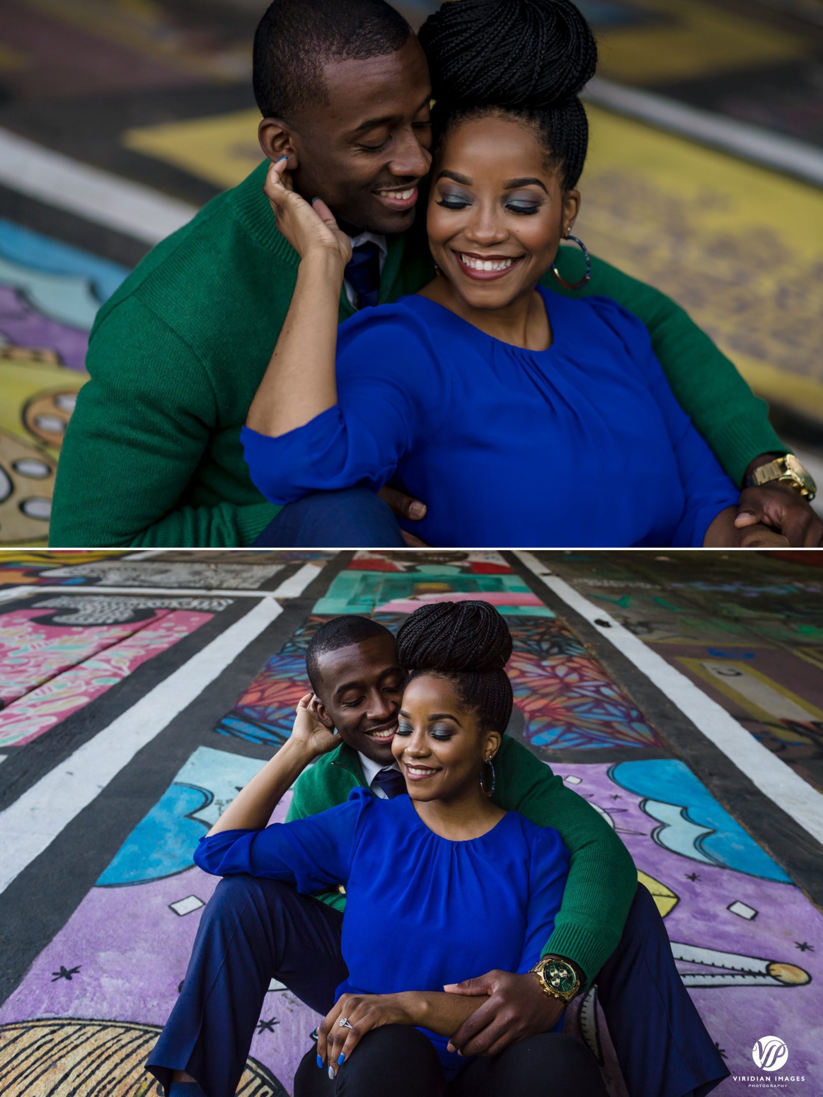 Bold, complementary colors (like Gelyse and Jerome’s green and blue!) work beautifully against the Beltline‘s eclectic backdrop. Think classic, stylish, and comfortable enough to stroll around.