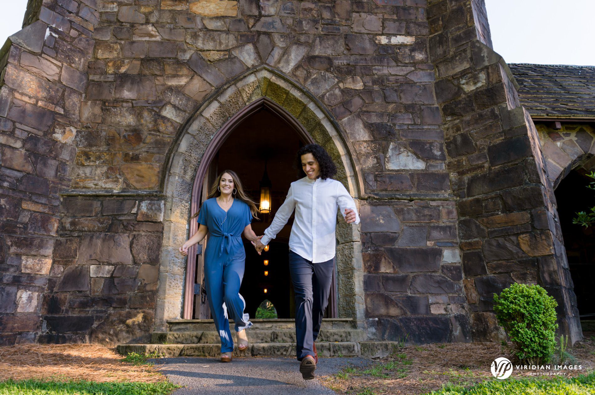 We began Sarah and Tyler’s spring engagement session at Frost Chapel, one of the most iconic and picturesque locations on the campus of Berry College. With its stone architecture, towering trees, and quiet atmosphere, Frost Chapel offers a timeless backdrop that perfectly sets the tone for an engagement session.