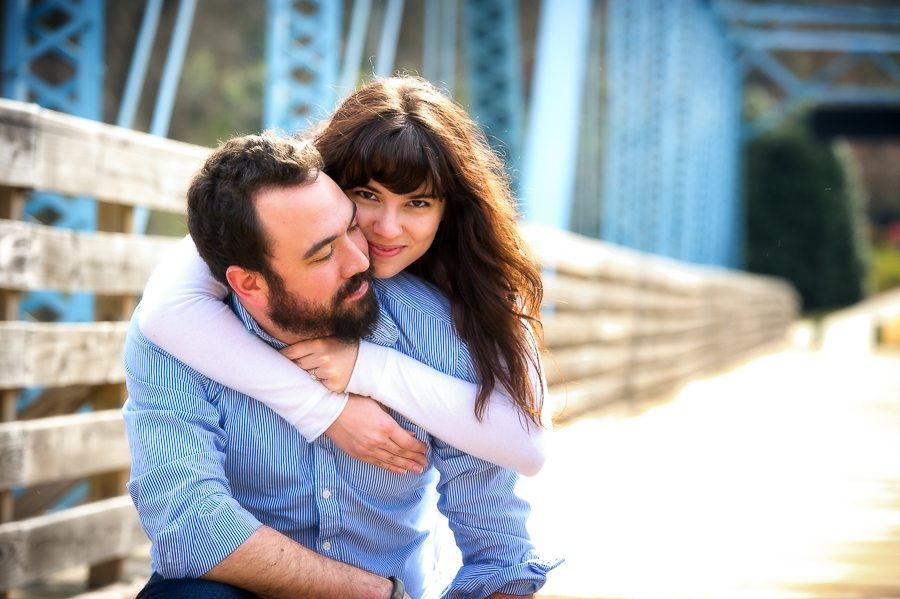 What really makes the shoot better is having a couple like this to photograph. Easy going, adventurous, and totally in love. Jeff has a very calming influence about him. Annette seems to have a permanent smile. Together they have compatibility written all over them. Inseparable at all times, it really doesn’t take much to find natural moments where you can just shoot away and grab tons of great expressions and emotions. They also understand the artistic importance of photography. So when we asked them to run through the water jets of the Olympic Fountain of Rings on a chilly afternoon so we could try to get some unusual shots; Jeff’s response was an enthusiastic “Let’s go!” Yeah, they got a little wet because of some bad timing; but they did’t care one bit. We had just as much fun behind the camera watching them. not only did we get to see the excitement in their eyes with each other, but the water allowed us to add layers to the photographs as if we were right inside the moment with them. This was just a microcosm of the entire session. The more we explored the park and the neighboring streets, the more they wanted to keep going. Their energy was outstanding and any photographer will tell you that this type of enthusiasm and collaboration only leads to better creativity. It’s because of Jeff + Annette that we have a whole new appreciation for Centennial Park. In the future we look forward to working there again. There are so many additional spots and ideas we left on the table simply because we ran out of time. But that’s a good thing; isn’t it? We can’t wait to work with this couple on the biggest day of their lives. Thanks again Jeff + Annette for such a wonderful afternoon in downtown Atlanta.