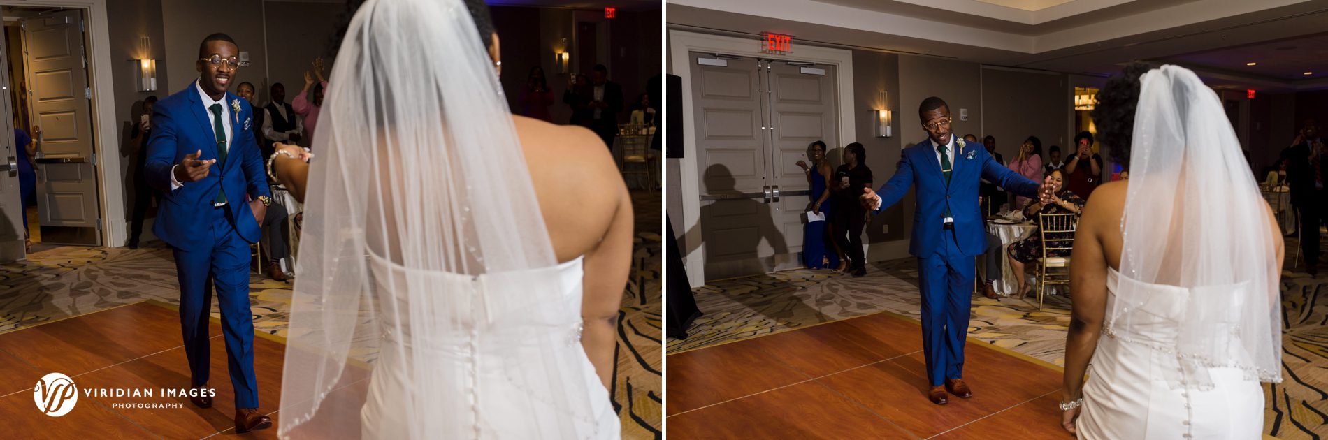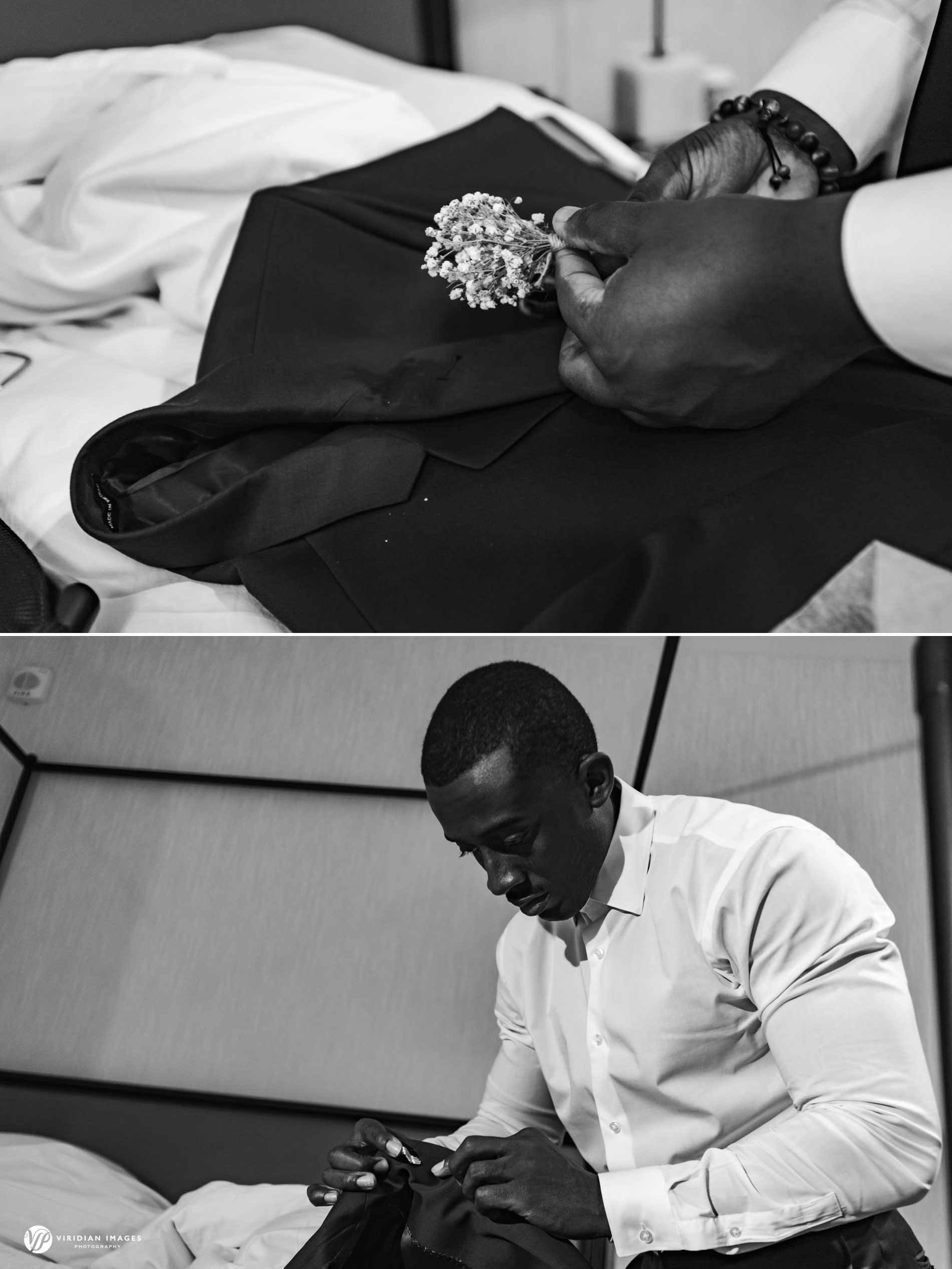 Gelyse and Jerome began their day at the Hyatt Regency Atlanta Perimeter at Villa Christina, where both the bridal and groom suites offered the perfect space to relax, connect, and prepare for the celebration ahead.
