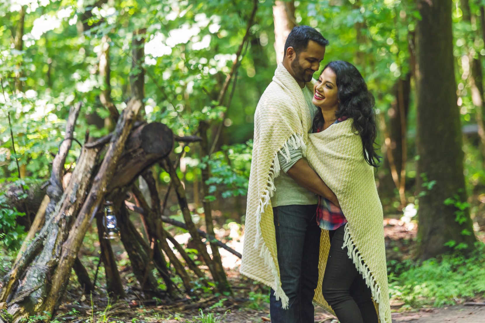 Sabrina wanted a camping theme for her engagement session since they both love the outdoors. And after a downpour that hot, humid June day in Atlanta, the skies parted and we all enjoyed an amazing time having fun pretending there was a little crispness in the air.