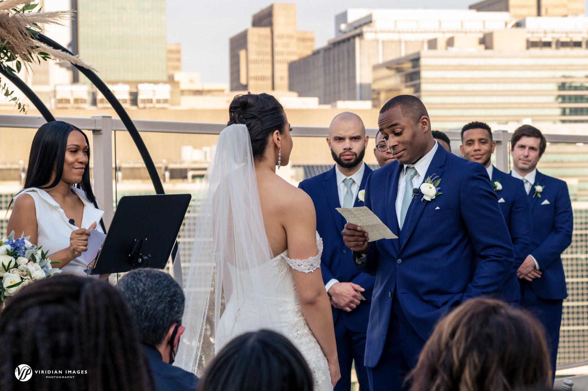Ashley and Thad’s first look atop the Ventanas helipad was a moment straight out of a movie. High above the city, with skyscrapers rising around them, they shared a private exchange that was both emotional and exhilarating. This intimate time together set the tone for the rest of the day, filled with joy, love, and a touch of bold adventure.